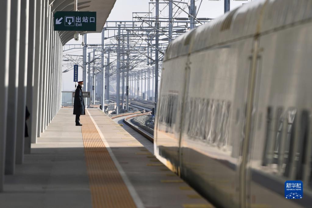 12月26日,一趟試運行動車組列車駛入銀蘭高鐵秦王川站。