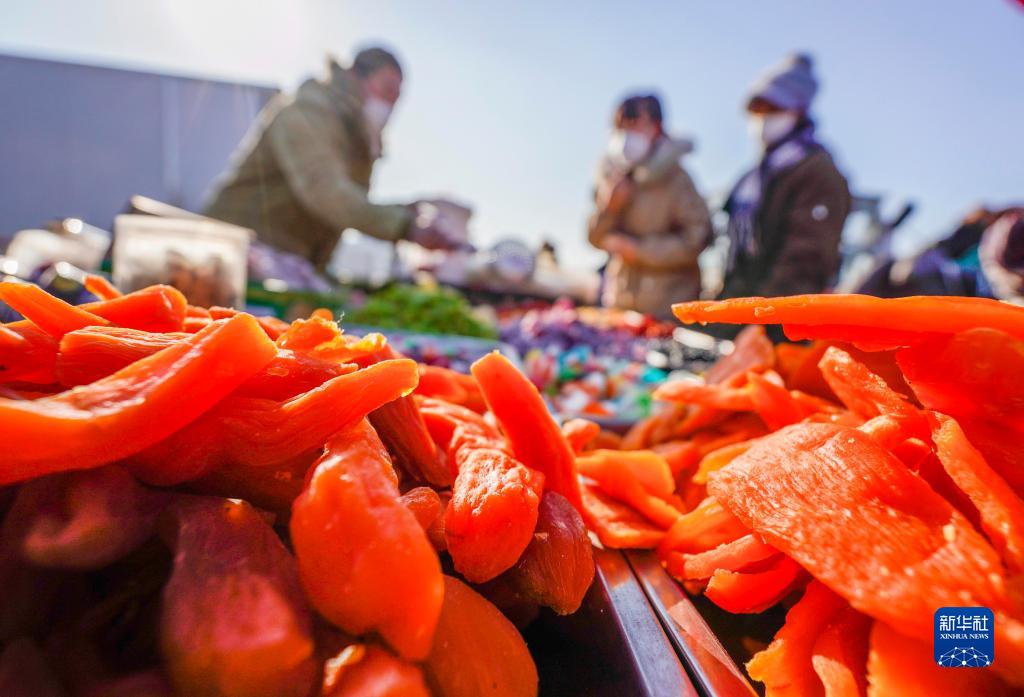 12月26日,人們在遵化市平安城鎮大集選購土特產。