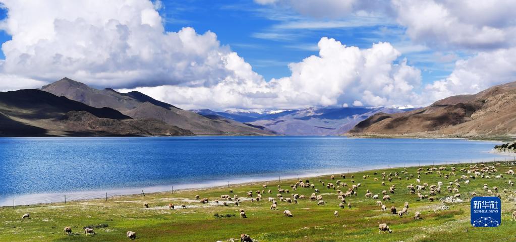 這是在西藏山南市浪卡子縣拍攝的夏日羊卓雍湖(2022年7月24日攝)。