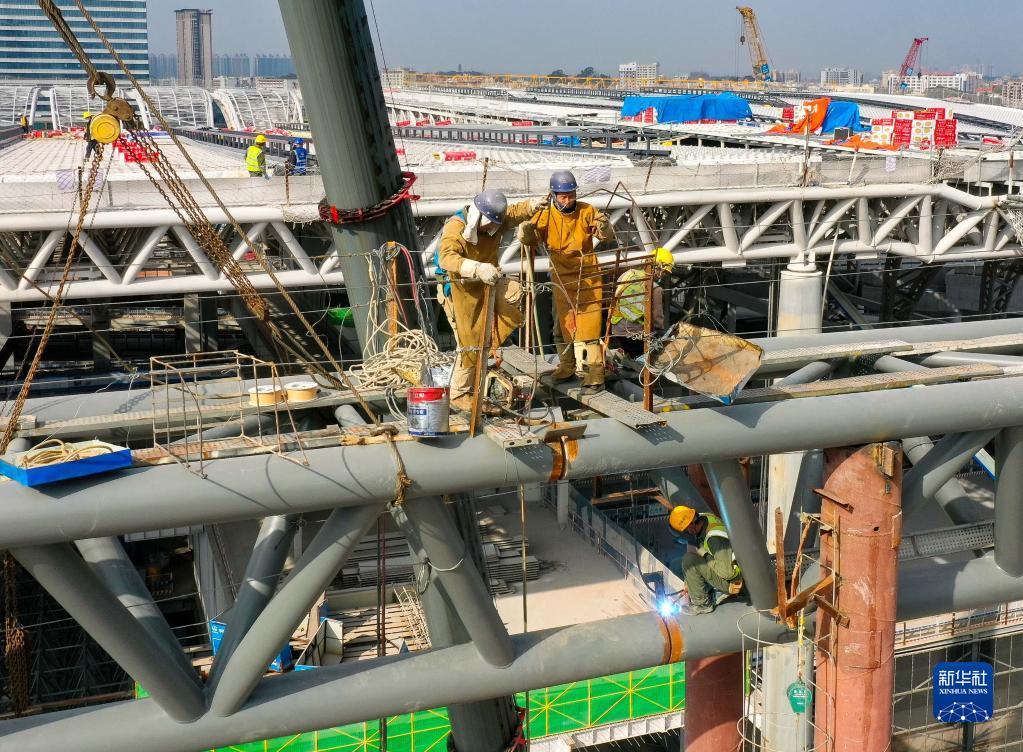 12月27日,建設者在廣州白云火車站項目建設現場進行二期主體結構施工。