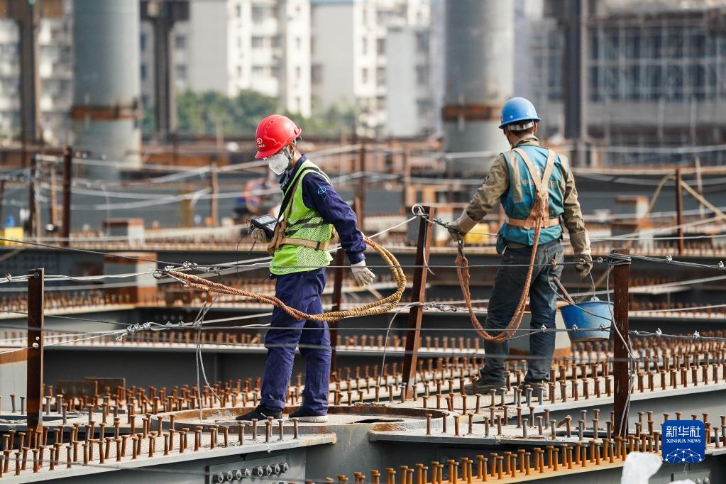 12月27日,建設者在廣州白云火車站項目建設現場進行二期主體結構施工。
