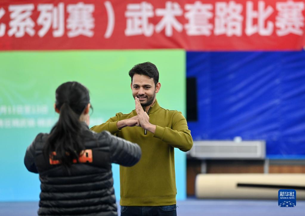 在天津市西青區精武鎮精武會館,穆罕默德·納比爾(右)和霍靜虹一起練習“霍氏練手拳”(12月25日攝)。