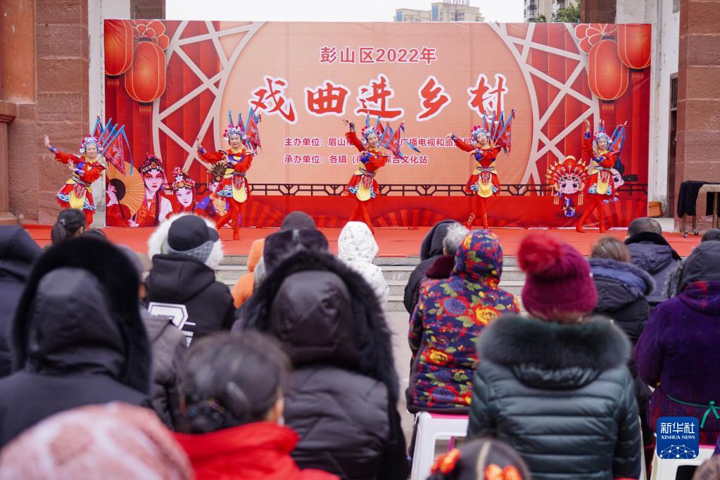 12月27日,在眉山市彭山區觀音街道龍門橋社區,演員為觀眾表演。
