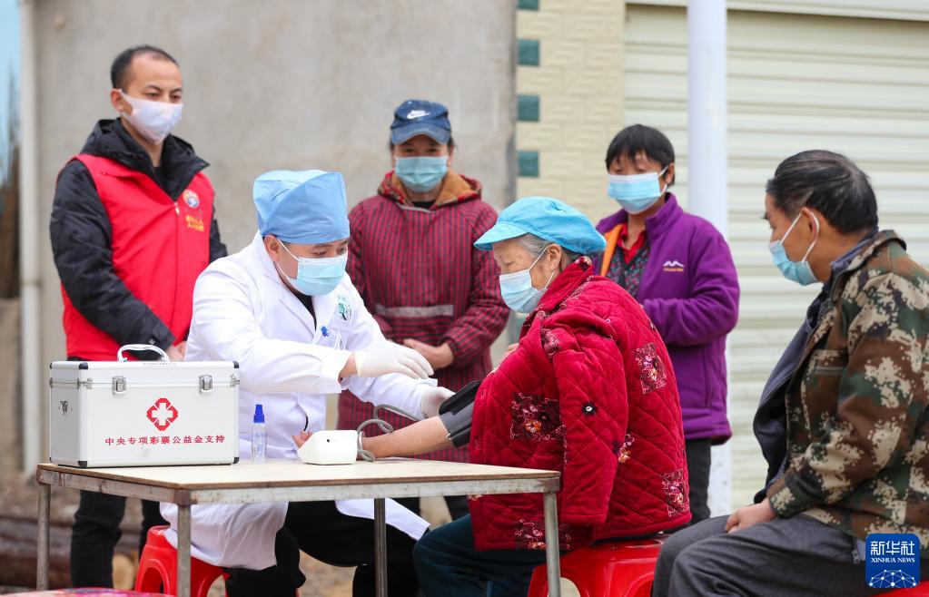 12月27日,在岑鞏縣思旸鎮坪壩村,村醫為村民檢查身體。