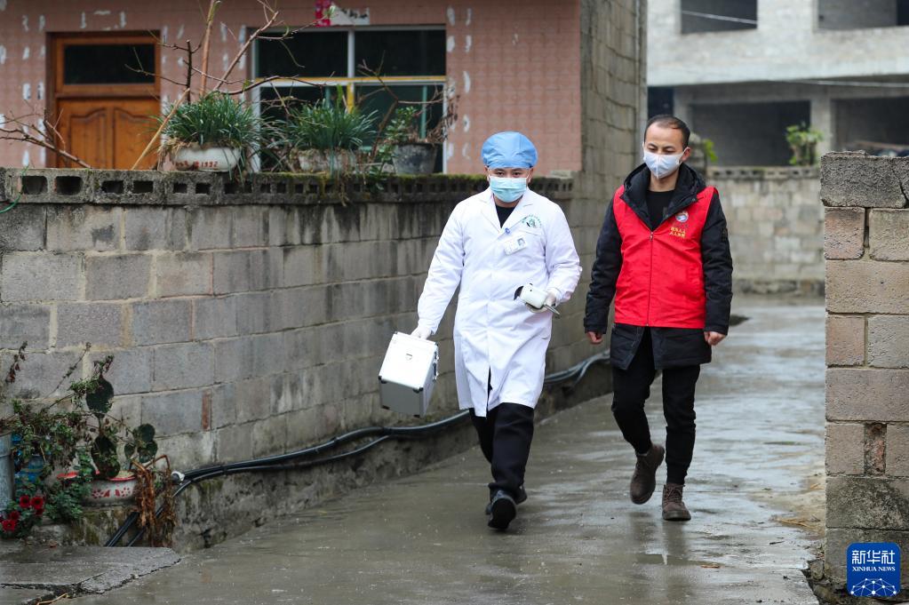 12月27日,在岑鞏縣思旸鎮坪壩村,村醫和黨員志愿者為村民送醫送藥。