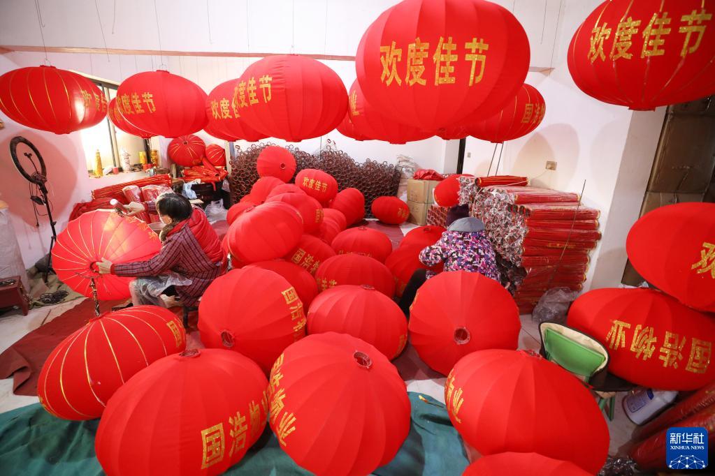 新年臨近,河南省焦作市溫縣北冷鄉許北張村燈籠作坊內一派忙碌景象,村民們加緊趕制大紅燈籠,供應節日市場。