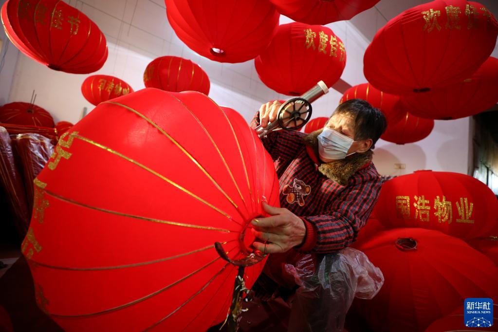 新年臨近,河南省焦作市溫縣北冷鄉許北張村燈籠作坊內一派忙碌景象,村民們加緊趕制大紅燈籠,供應節日市場。