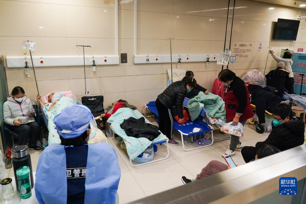 在朝陽醫院急診醫學科,家屬等候區改成臨時病房,以救治更多病人(12月27日攝)。