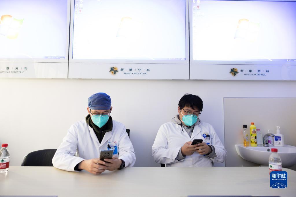 12月27日,在上海交通大學醫學院附屬新華醫院互聯網醫院,醫生通過手機為線上患者提供醫療咨詢與復診。