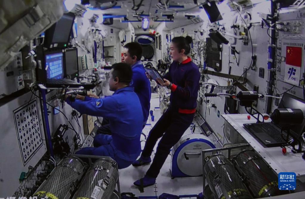 1月8日在北京航天飛行控制中心拍攝的神舟十三號航天員乘組進行手控遙操作天舟二號貨運飛船與空間站組合體交會對接試驗,航天員通過手控遙操作方式控制貨運飛船。 新華社記者 郭中正 攝