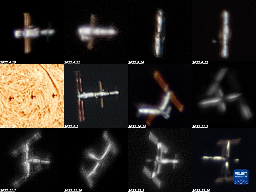 自2022年4月以來中國空間站建造階段的若干不同構型(拼版照片)?!⌒氯A社發(劉博洋 攝)