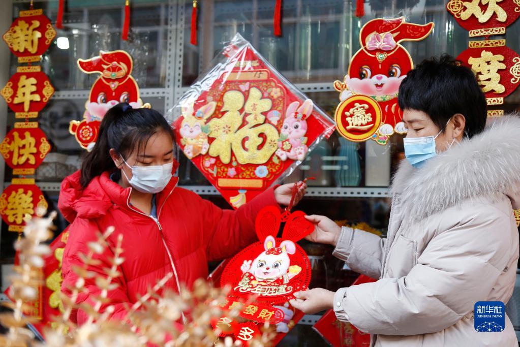 元旦、春節臨近,人們紛紛選購花卉、瓜果、春聯等年貨,迎接佳節。