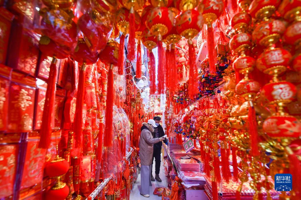 12月29日,人們在江蘇省南京市一家小商品市場選購新年飾品。