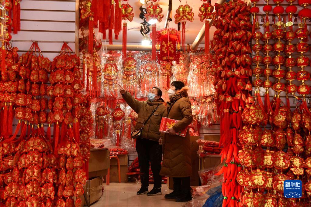 12月29日,人們在河北省石家莊市一家年貨市場選購年貨。