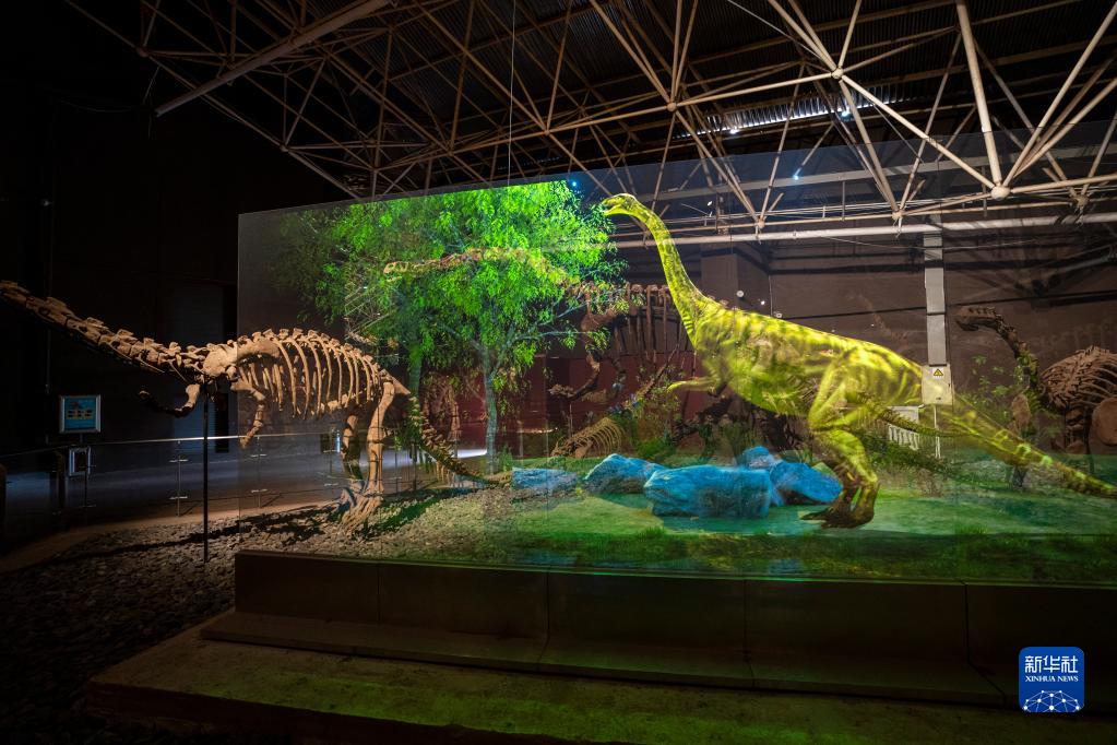 這是12月28日在中國祿豐恐龍大遺址館拍攝的通過數字技術還原的恐龍形象。