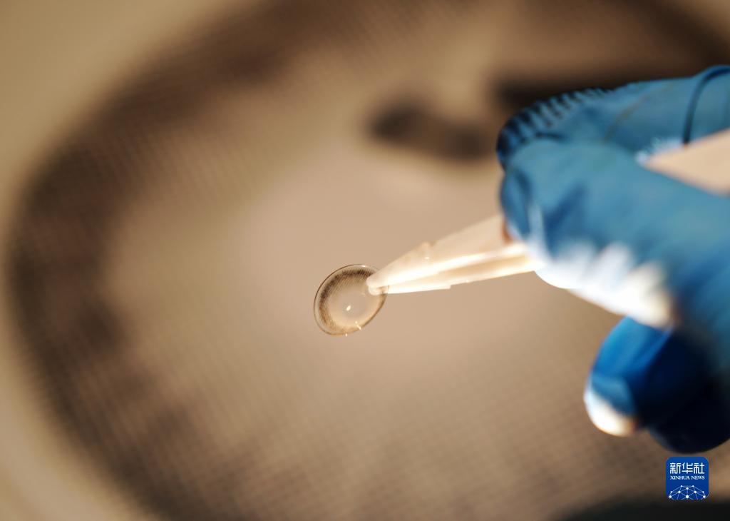 12月29日,一家隱形眼鏡企業的工人在車間檢測隱形眼鏡質量。