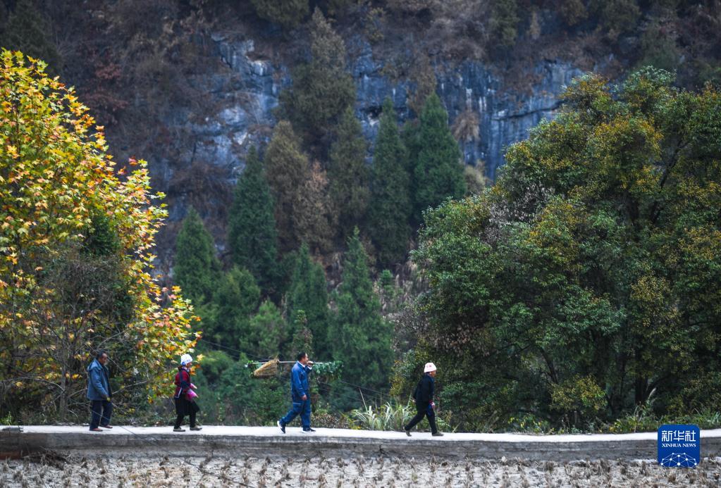 劉開福(右二)與村民移栽油菜苗(2022年11月14日攝)。
