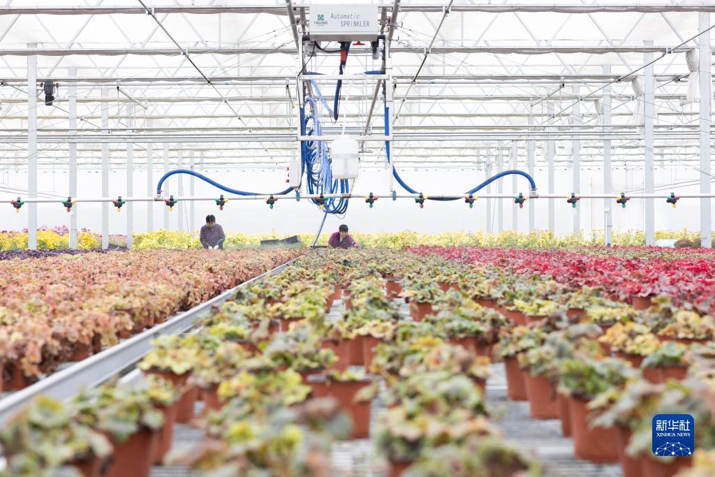 在上海浦東新區惠南鎮海沈村,村民在花卉基地里務工(12月7日攝)。