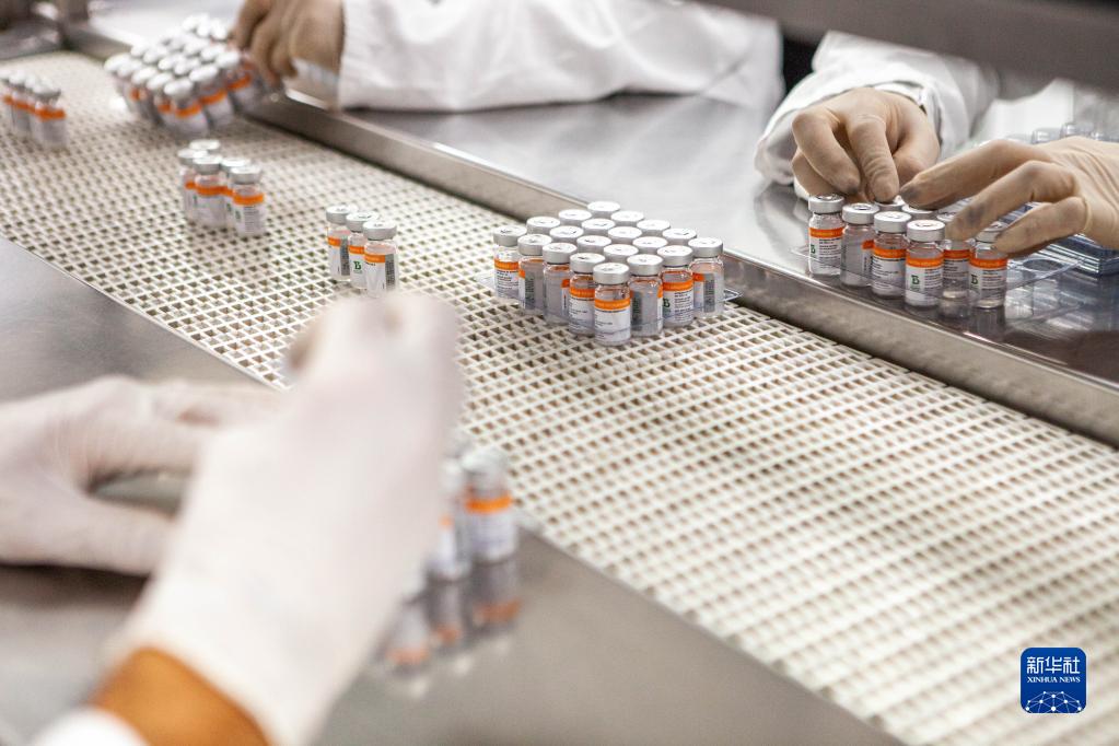 這是2022年8月31日,工作人員在巴西圣保羅州布坦坦研究所的克爾來福新冠疫苗生產線上工作。自2020年6月以來,巴西布坦坦研究所與中國科興公司開展了包括新冠疫苗Ⅲ期臨床試驗在內的多項臨床研究。新華社發(巴西布坦坦研究所供圖)
