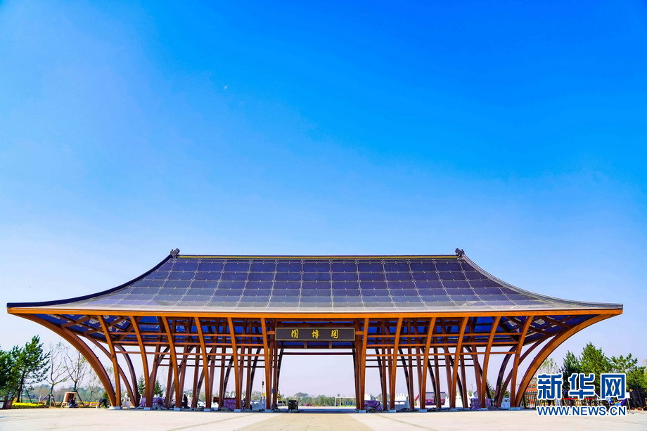 京杭大運河畔的滄州園博園的“滄州之門”。新華網發(崔上 攝)