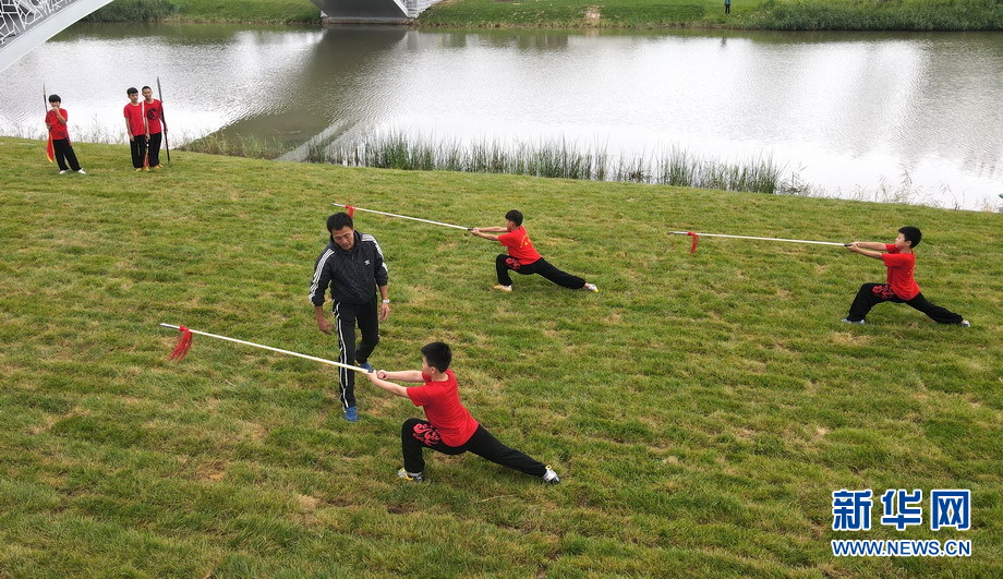 滄州中宇小學的學生在運河生態公園練習武術。新華網發(崔上 攝)