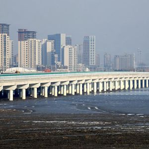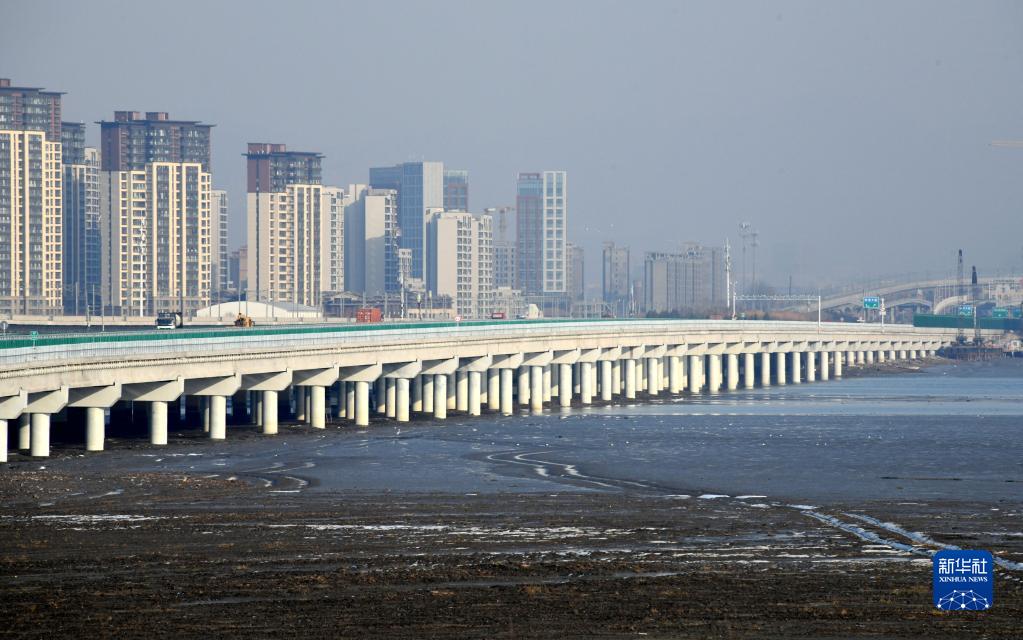 這是12月30日拍攝的建成通車的青蘭高速公路改擴建工程女姑口跨海特大橋。