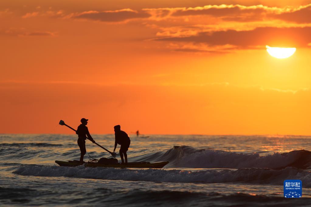 12月28日,巴勒斯坦漁民在加沙城附近的地中海水域捕魚。