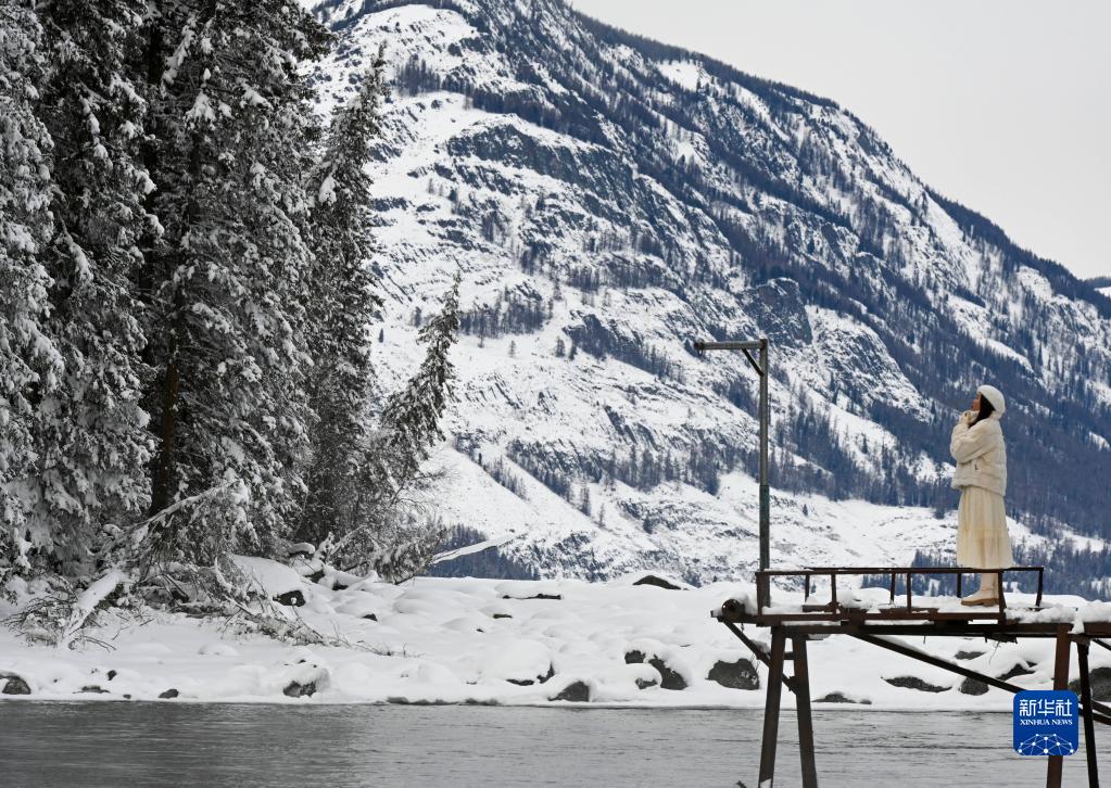 冬日,位于新疆阿勒泰地區的喀納斯景區銀裝素裹,雪地、冰湖、霧凇相映,美麗景色宛若童話世界。