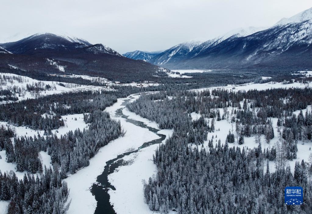 這是12月29日拍攝的喀納斯景區冬景(無人機照片)。