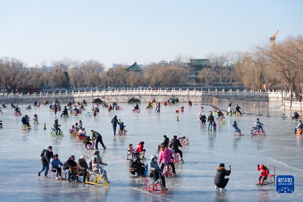 元旦假期第一天,不少游客來到北京北海公園冰場游玩,感受冬日樂趣,迎接即將到來的2023年。