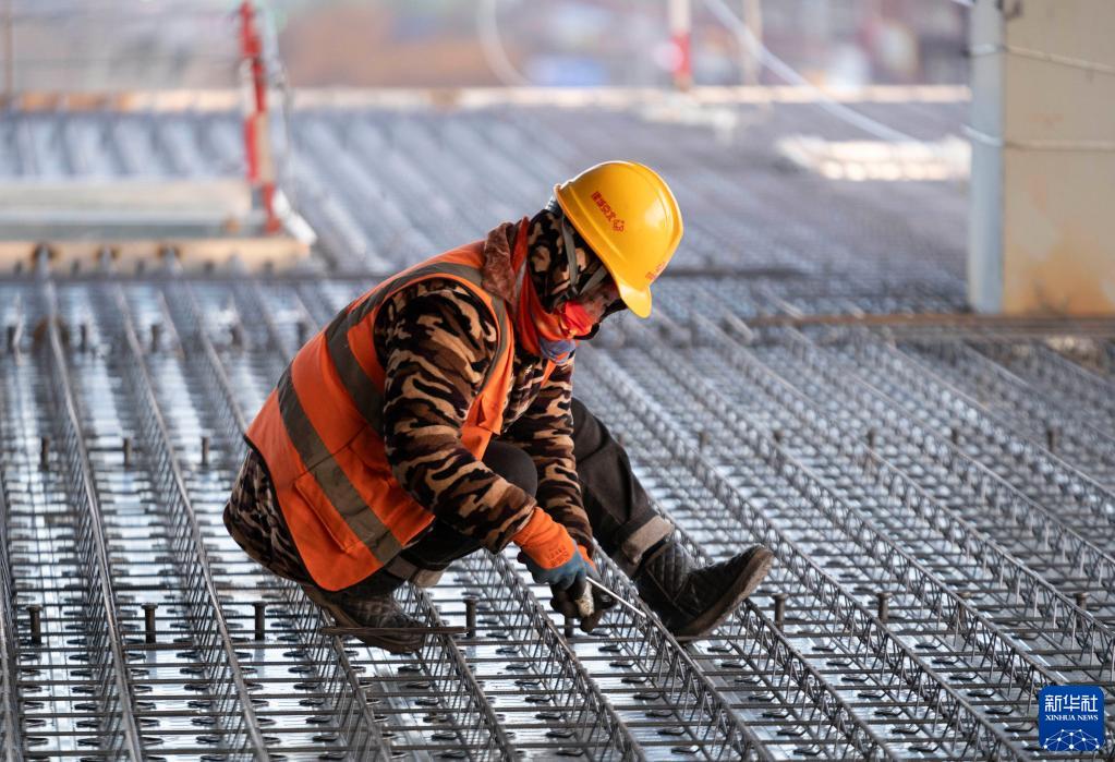 12月31日,在北京市豐臺區檔案館建設項目工地,鋼筋工孫會琴在做鋼筋綁扎。