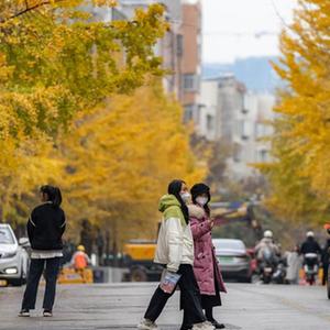 近日,云南省昆明市文林街街道兩側的銀杏進入最佳觀賞期,金黃色的樹葉掛滿枝頭,吸引游客前來觀賞。
