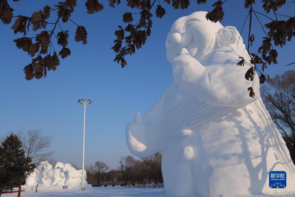 當日,許多市民和游客來到第35屆哈爾濱太陽島國際雪雕藝術博覽會園區游玩,歡度元旦假期。