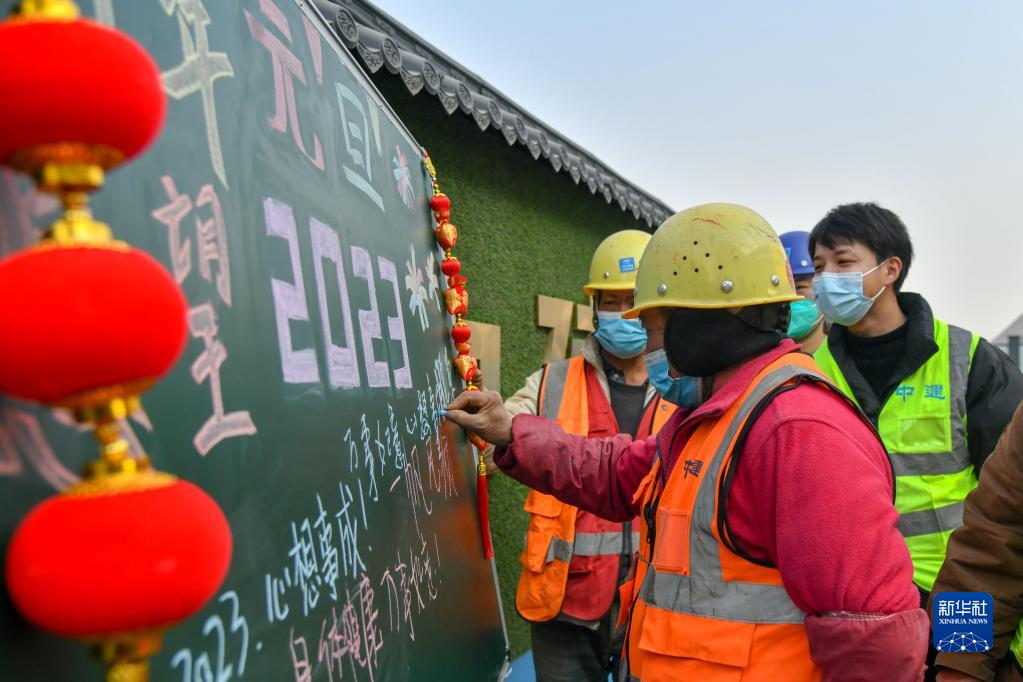 當日,在山東濟南唐冶醫院工程項目現場,參與施工的中建三局集團有限公司為元旦假期堅守崗位的工友舉行集體生日會,共同迎接新年的到來。