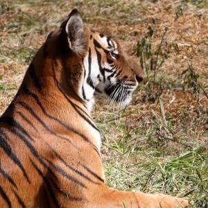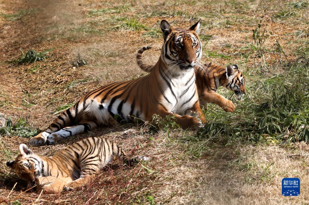 當日,中國華南虎蘇州培育基地出生不足百天的雙胞胎小華南虎亮相。這兩只小華南虎出生于2022年10月,目前生長情況良好。