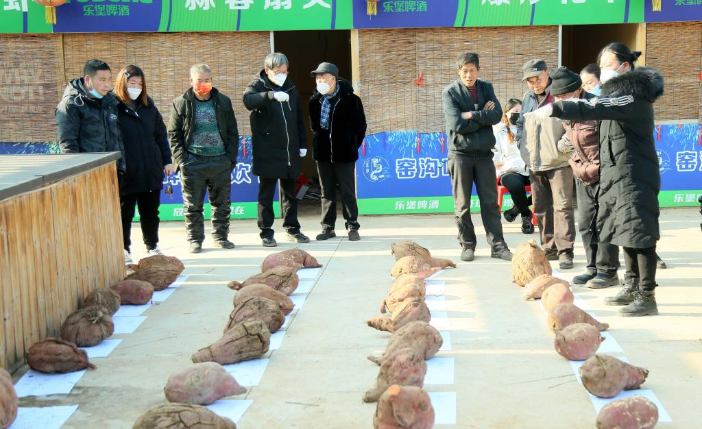 12月30日,觀眾在汝陽紅薯擂臺賽上觀賞參賽的紅薯。
