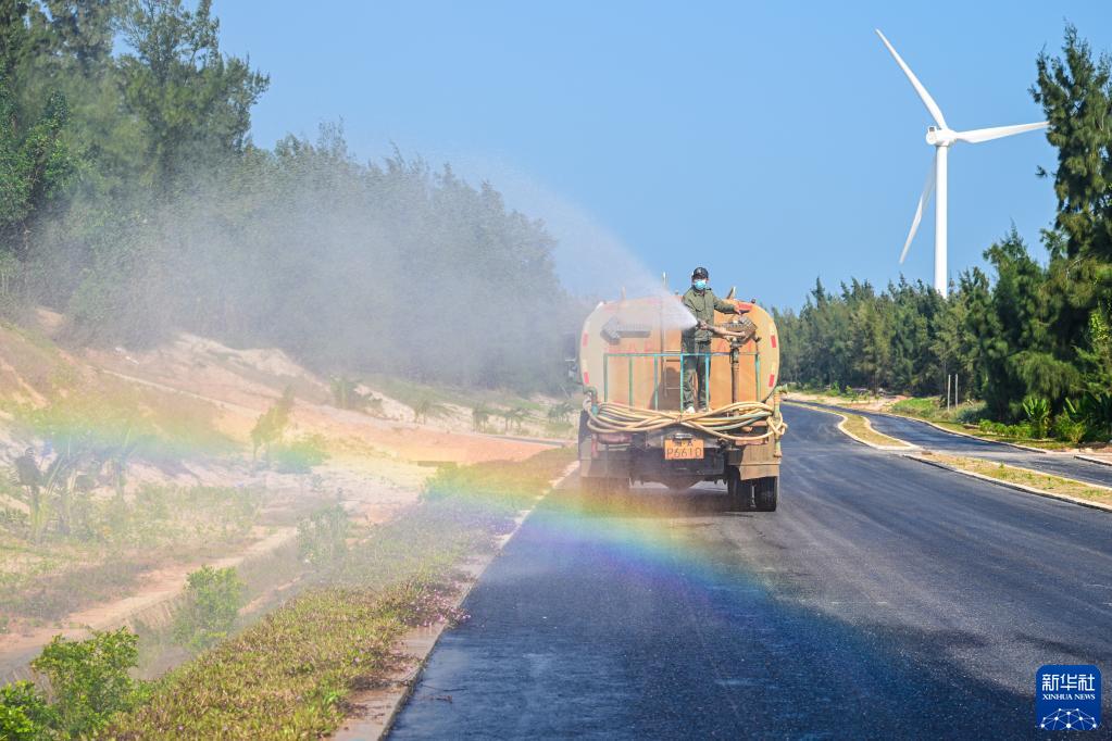 近日,海南環島旅游公路文昌木蘭灣段已現雛形,工人們正在進行瀝青攤鋪、綠化等施工。該路段全長43.2公里,是海南環島旅游公路的重要組成部分。