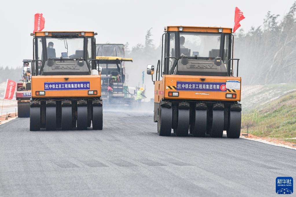12月30日,在海南環島旅游公路文昌木蘭灣段,工人駕駛膠輪壓路機將新鋪的瀝青路面壓實。