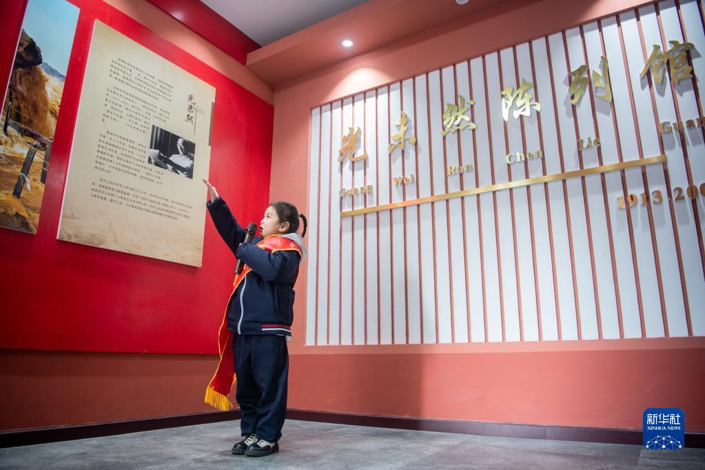 12月29日,志愿講解員在光未然陳列館進行引入講解。新華社記者 伍志尊 攝