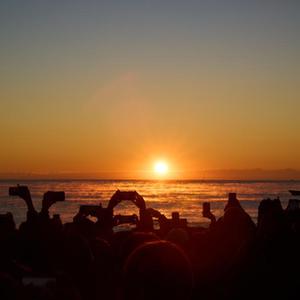 新年伊始,人們在海邊迎接新年第一縷陽光。