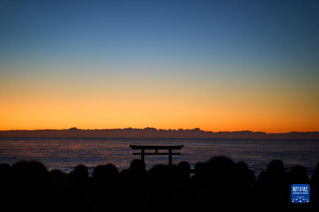 1月1日,人們在日本茨城縣大洗町的海邊等待日出。