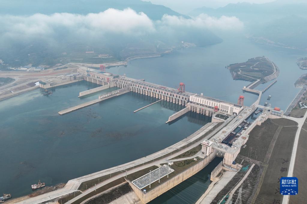 這是1月1日拍攝的建設中的廣西大藤峽水利樞紐工程(無人機照片)。