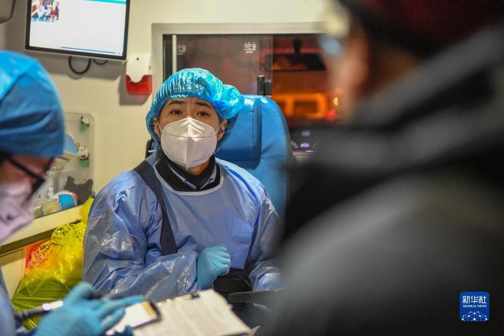 2022年12月31日,接到患者后,長春市急救中心富民大街急救站醫生李立群在救護車上詢問患者病情。