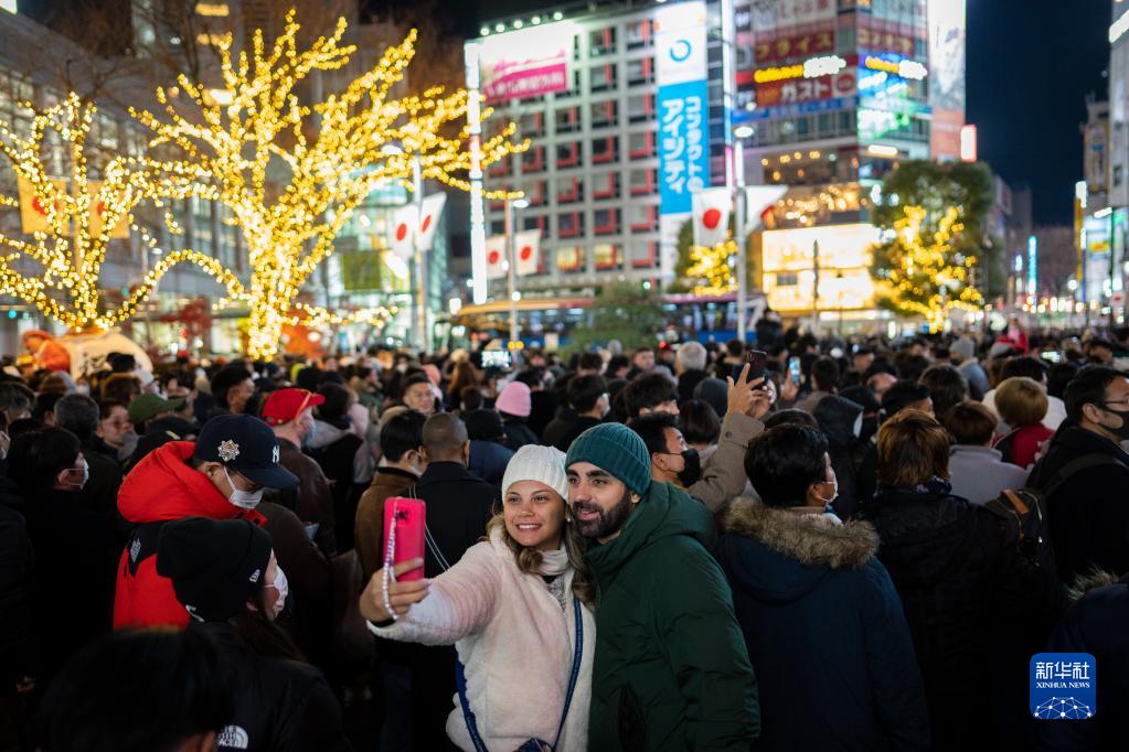 2022年12月31日,人們在東京澀谷迎接新年到來。