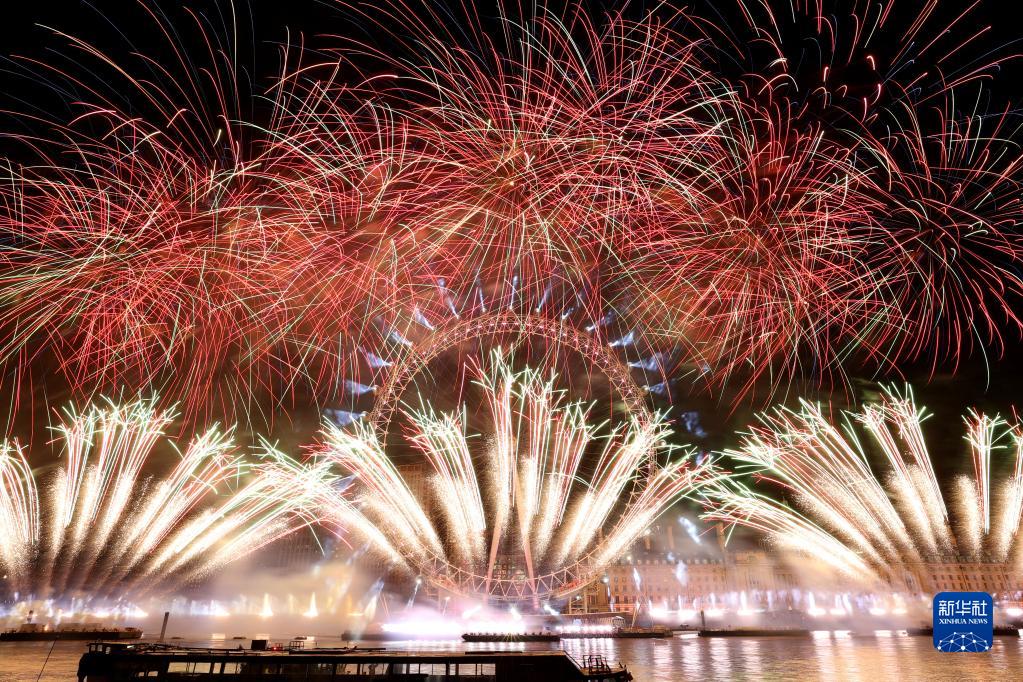 這是2023年1月1日在英國倫敦拍攝的新年煙花。