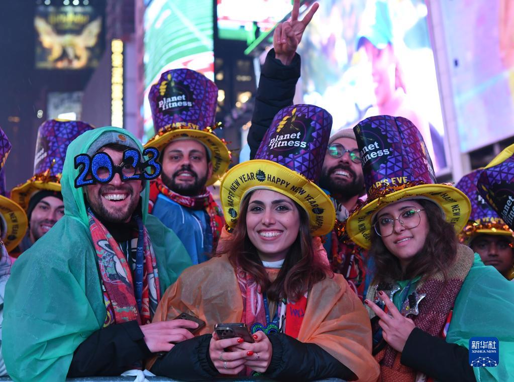 2022年12月31日,人們在美國紐約時報廣場參加跨年活動。