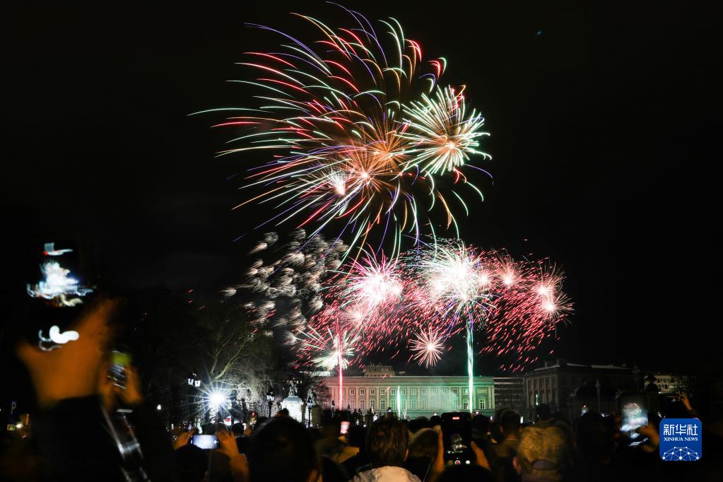 這是2023年1月1日在比利時布魯塞爾拍攝的新年煙花。