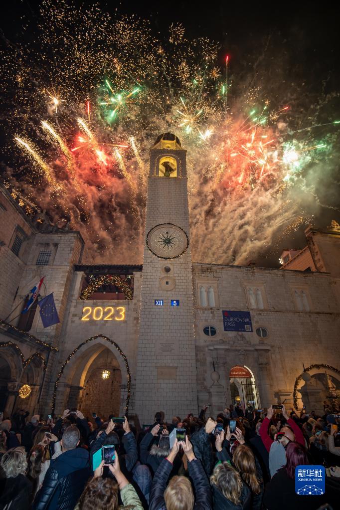 這是2023年1月1日在克羅地亞杜布羅夫尼克拍攝的新年煙花。