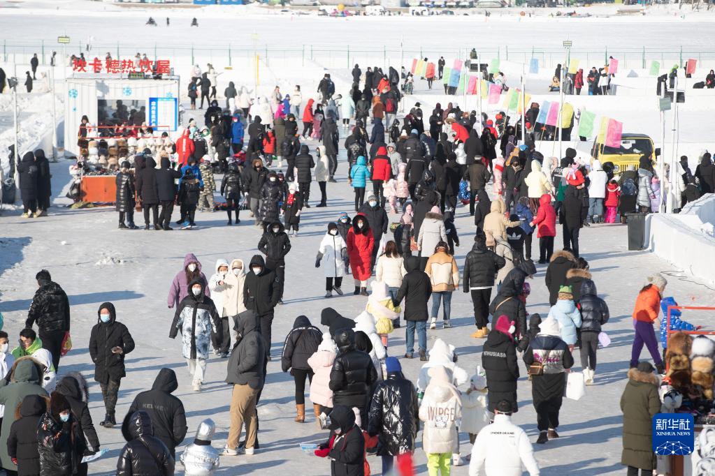 1月1日,游客在哈爾濱松花江冰雪嘉年華園區游玩。
