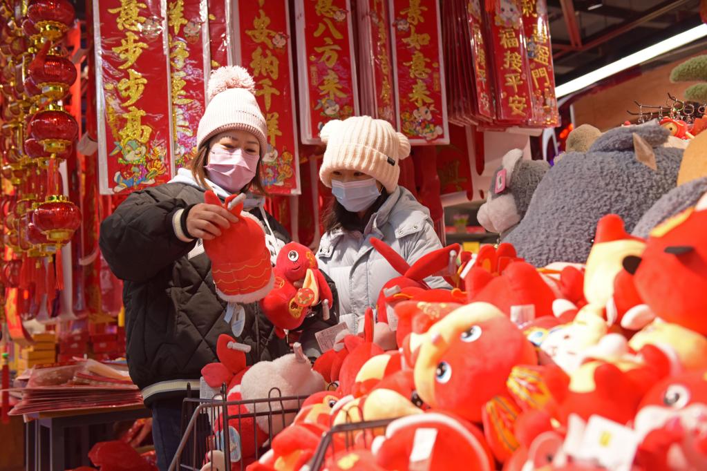 1月1日,市民在貴州省黔東南苗族侗族自治州岑鞏縣一家商場選購兔年毛絨玩具。